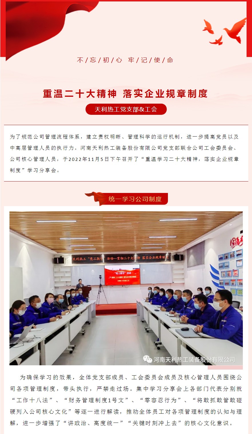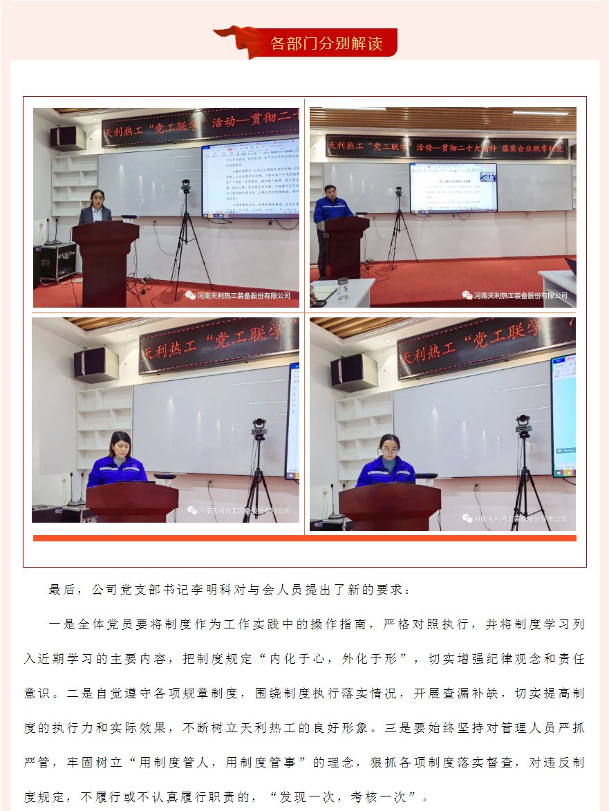 天利熱工丨“黨工聯(lián)學(xué)”活動(dòng)—貫徹二十大精神 落實(shí)企業(yè)規(guī)章制度